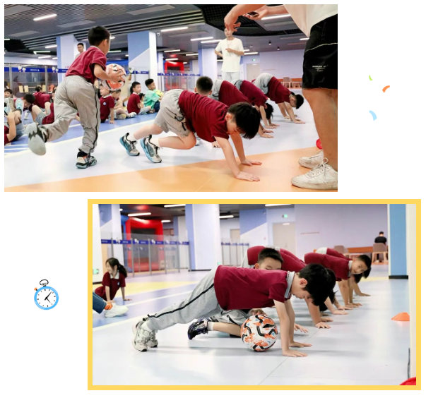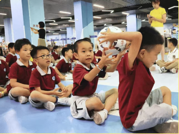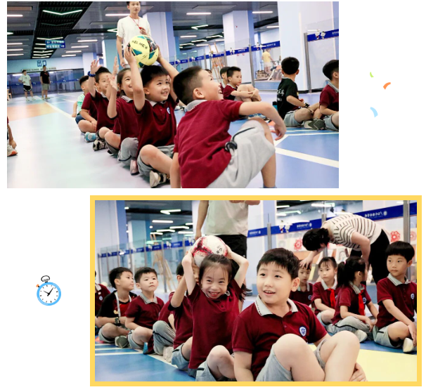 "趴下!手撑地!"孩子们俯卧排成列,撅着屁股像一只只小青蛙。体育老师一声哨响,第一人"唰"地传球,队列最后一人快速抱球爬起......全场爆发出快乐的欢呼。