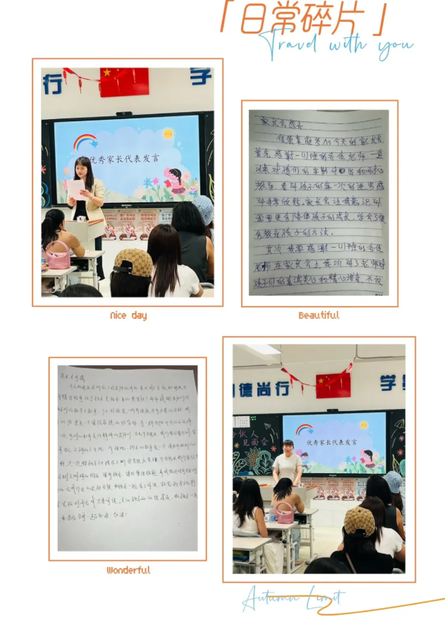 更难忘上学期家长会后,我收到的那一封封手写感言:“看到孩子在班里那么开心,还学会了感恩,特别感谢老师的用心”、“踏浪班就像一个大家庭,能加入很幸运”…… 字里行间满是对班级工作的认可、对老师的信任,每一笔都化作家校同心的见证。