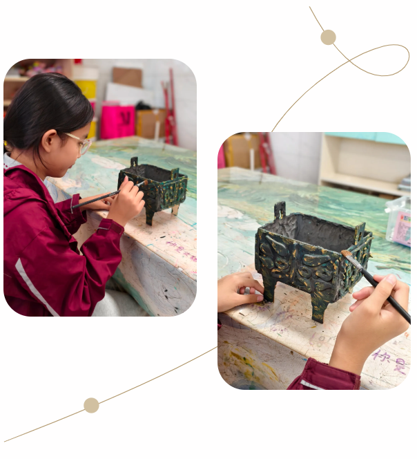 一件件作品在学生们手中渐次成型。那些曾经只在课本上见过的文物,通过年轻的手指获得了新的生命。这一刻,历史不再是遥远的文字,而是可触可感的温度;文化传承不再是抽象的概念,而是手心相连的实在,五千年的文明正以最生动的方式,在年轻一代手中延续、新生。