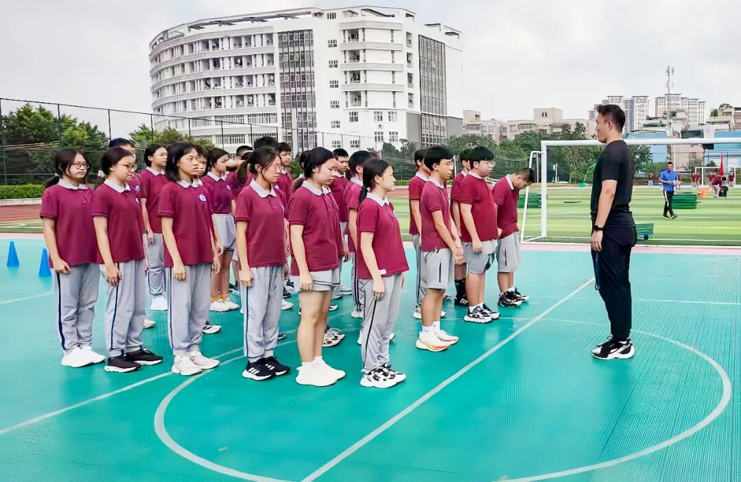 邱佳兴老师的亮相课《立定跳远和发展立定跳远能力练习》教学目标明确,紧扣技能、体能及心理社会适应三维目标。课堂上,从口诀化讲解(“一摆二蹲三跳起”)到预摆、展腹跳等四组专项练习,教学环节层层递进,有效突破“蹬摆协调”重点与“全身发力”难点。游戏“集体跳远接力”寓教于乐,激发团队精神,是一节结构完整、富有活力的高效体育课。