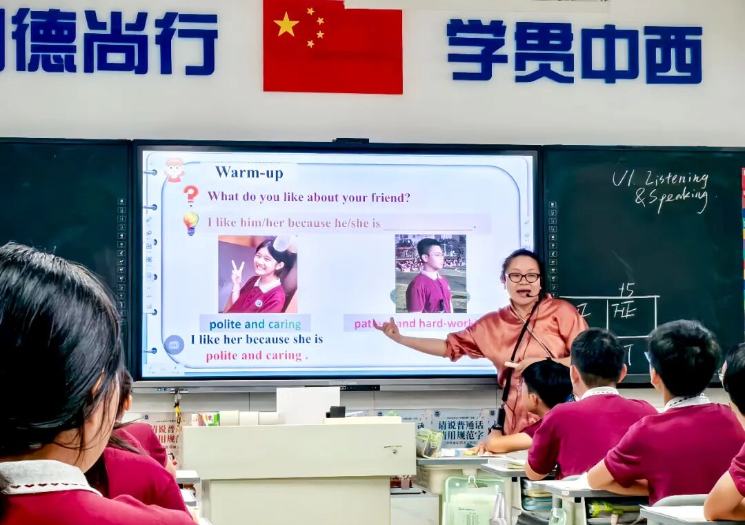 杨镤老师围绕用英语“介绍自己与他人”的核心目标,遵循输入先行、输出驱动的理念,设计了由听力输入到口语输出的教学流程。课堂伊始通过听力材料帮助学生熟悉目标句型和词汇,为后续任务奠定基础。主要的教学亮点体现在创设了“描述与猜测”的课堂游戏活动。学生以小组为单位,抽取身边同学的名字,运用本单元所学词句进行合作描述,其他同学猜测描述对象。此任务贴近学生生活,有效激发了表达欲望,学生在相对真实的语境中操练了语言。在展示环节,引入了教师、小组共同参与的多元评价机制,旨在提升学生的参与度和倾听质量。