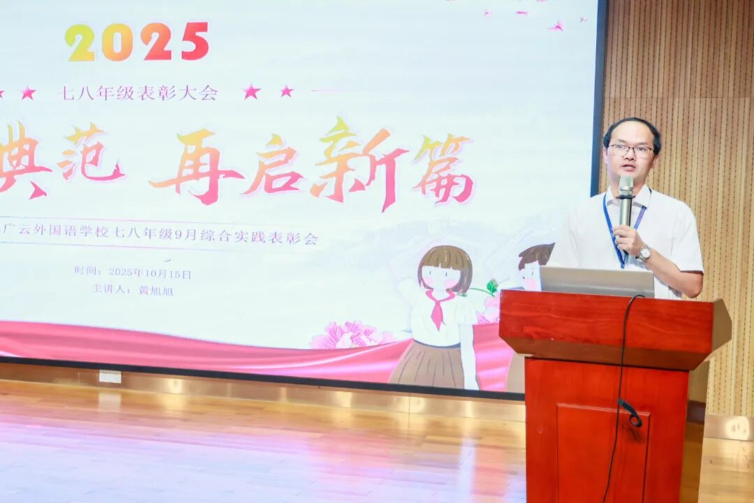 黄旭旭老师向所有获奖同学表示祝贺,并鼓励未获奖的同学不要气馁,见贤思齐。希望全体同学能将今天的荣誉化为明天的动力,砥砺品德,勤奋学习,成为一个全面发展的优秀中学生。