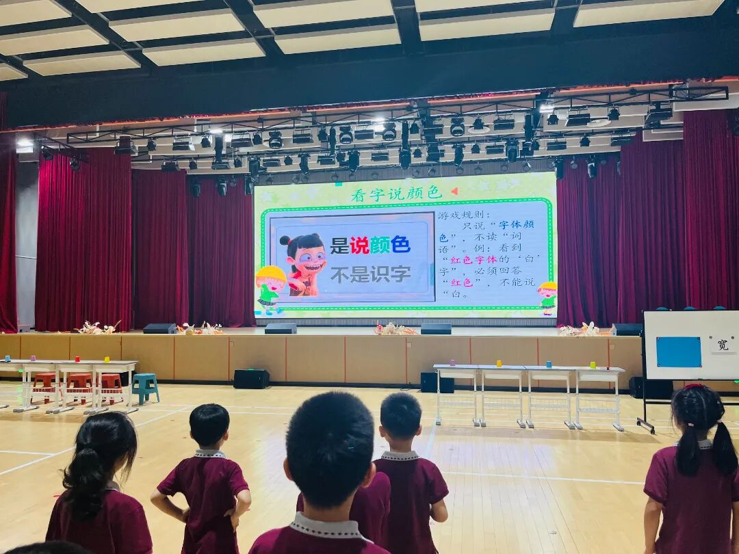 活力四射的热身运动拉开序幕,“看字说颜色”的游戏迅速点燃全场气氛。孩子们全神贯注,反应敏捷,在色彩与字形的碰撞中强化认知。