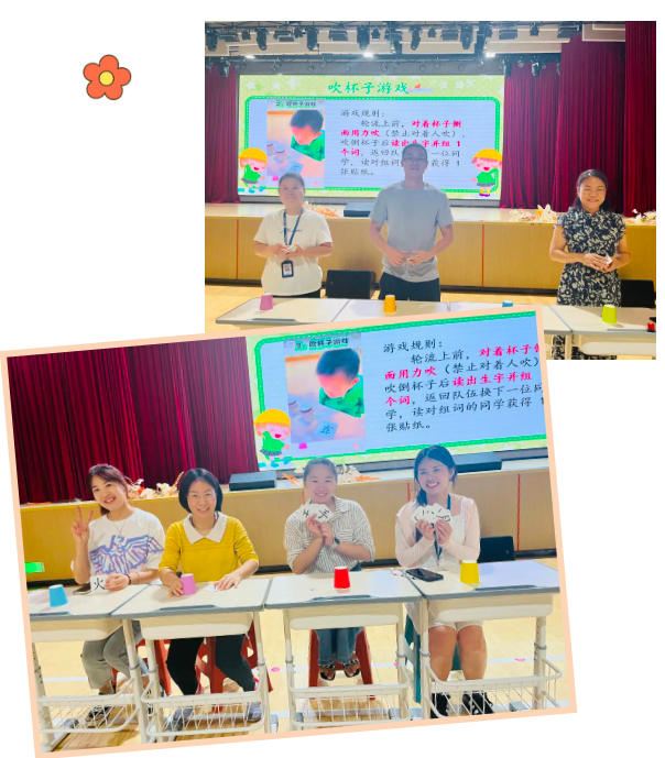 而“吹杯子”游戏更将趣味与知识结合,孩子们吹倒纸杯后自信认读生字、流畅组词,扎实的语文功底赢得阵阵掌声。