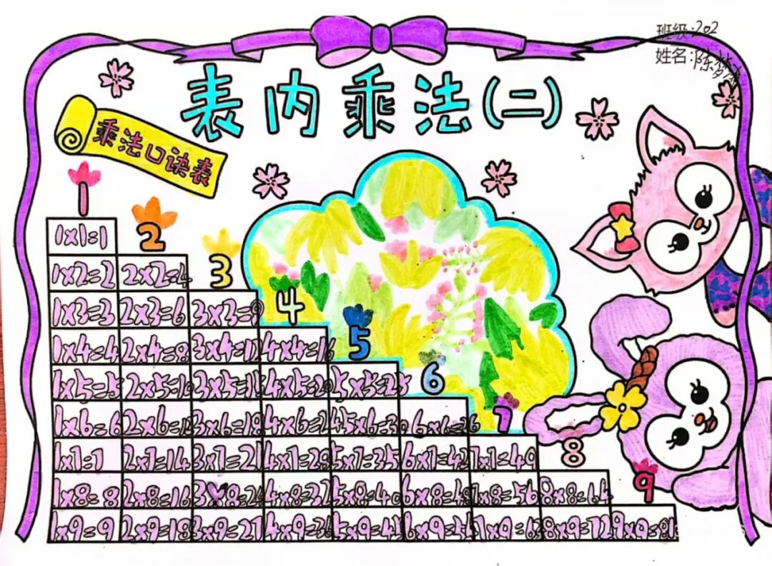 二年级小朋友巧思设计乘法口诀表,形式生动又好记。