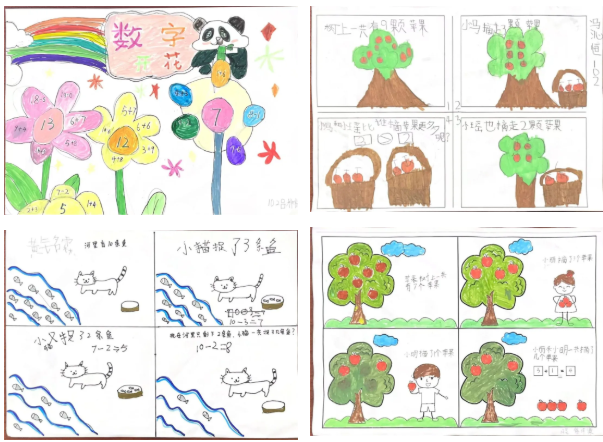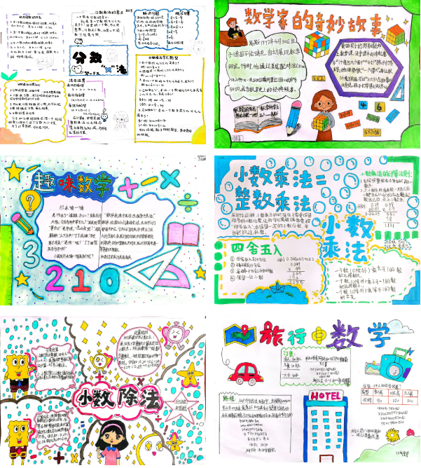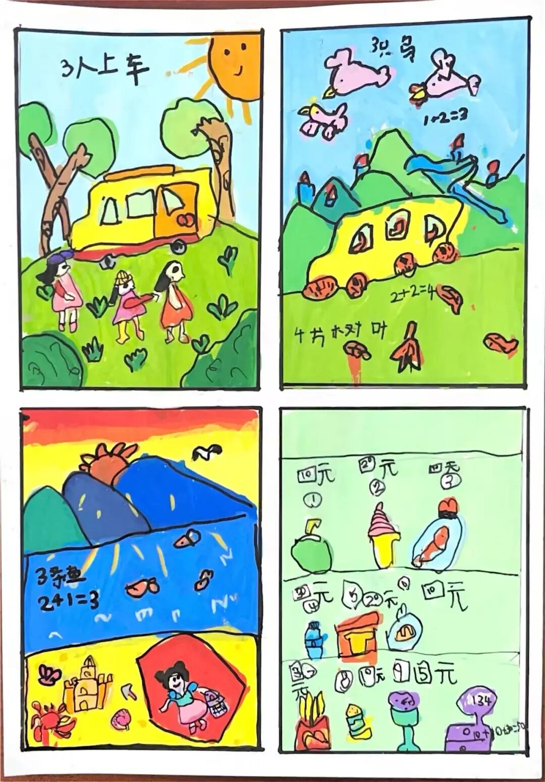 同学们热情投入创作,作品亮点纷呈,让人眼前一亮。一年级同学将生活场景中的数学知识融入手抄报设计,让知识贴近生活。