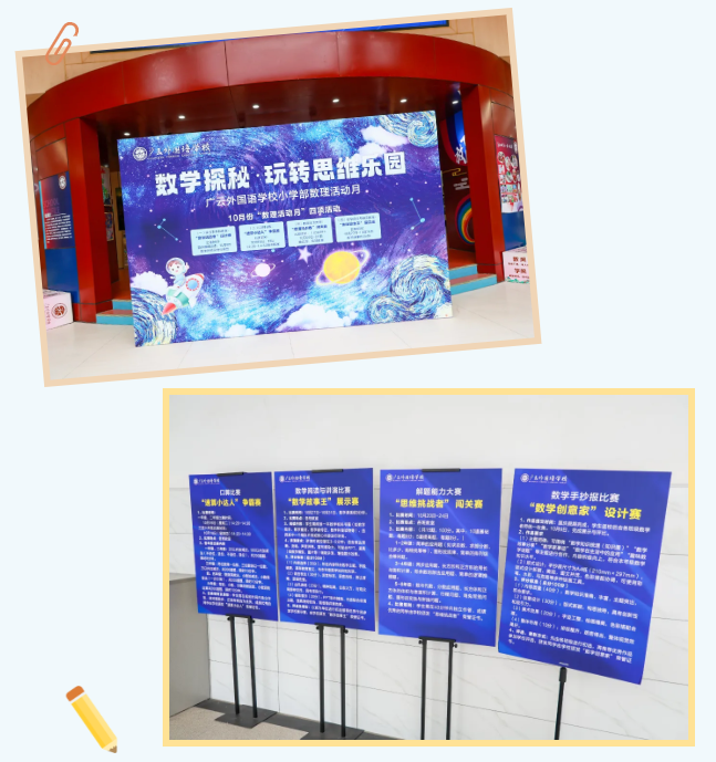 在数学思维火花迸发的10月,广云外校小学部“数学探秘,玩转思维”数理活动月圆满落下帷幕。在这一个月里,全体小学生积极参与“数学创意家”、“速算小达人”、“思维挑战者”、“数学故事王”等四项精彩活动,在数学的世界里尽情探索、创意迸发。