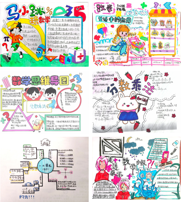 在“数学创意家”设计赛中,同学们围绕“数学知识梳理”、“数学在生活中的应用”、“趣味数学创意设计”三大主题进行创作,用A4纸勾勒出数学知识的脉络,或是分享数学故事、或是展现数学家风采、或是呈现数学在生活中的妙用,每一份手抄报都如同一幅数学艺术画卷,让我们看到了大家对数学的独特理解与创意表达。