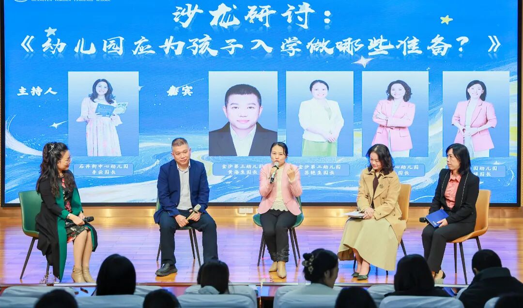 在主题研讨环节,现场氛围热烈而融洽,广州市白云区石井街中心幼儿园李云园长担当主持,广州市白云区金沙第三幼儿园黄海生园长、广州市白云区金沙第二幼儿园苏艳生园长、广州市白云区金沙街中心幼儿园冯雪杏园长、广州市白云区金沙馨园幼儿园曾焕娣园长四位园长作为畅谈嘉宾,围绕幼小衔接这一关键话题,各抒己见、畅所欲言。