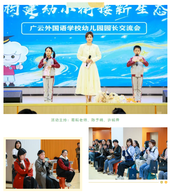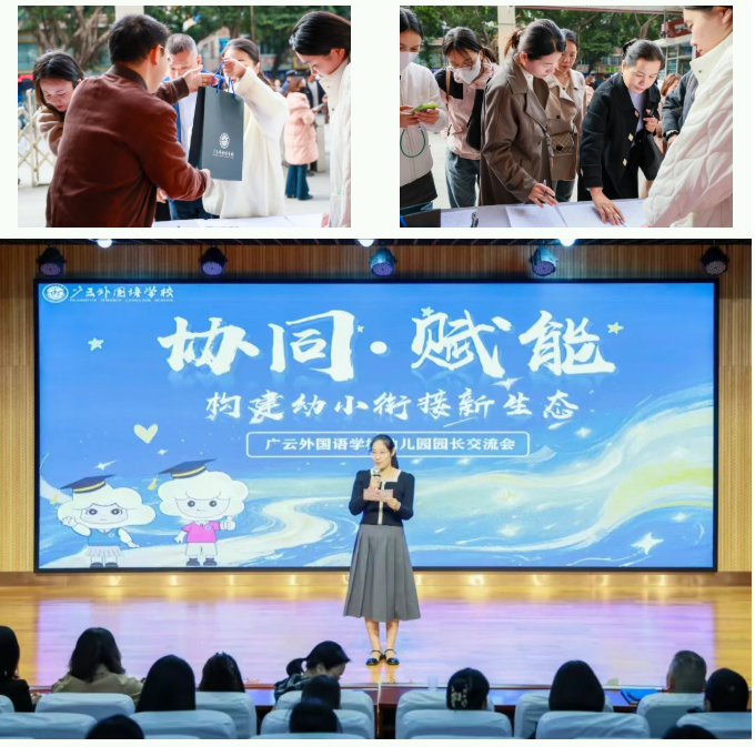 “从幼儿园到小学,不是翻山越岭,而是一场自然的衔接与成长。”为贯彻《教育部关于大力推进幼儿园与小学科学衔接的指导意见》,推进幼儿园与小学科学有效衔接,建立幼小协同长效机制,11月20日,广云外国语学校特举办百名幼儿园园长交流会。本次活动通过主题分享、班主任分享、主题研讨、专家讲座、学生特色课程成果展示等环节,旨在协同赋能,共探科学衔接路径,助力儿童实现从幼儿园到小学的平稳过渡。