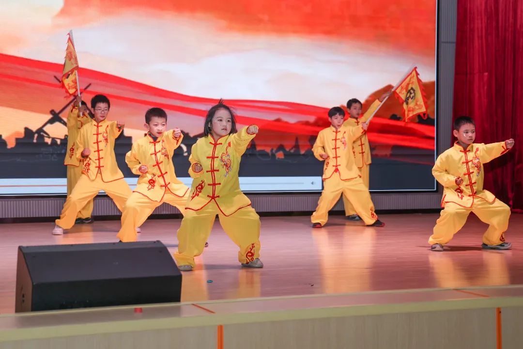 在一首热血沸腾的《中国龙》背景音乐下,虎虎生风的拳术、威武凛烈的棍术,身手矫健的广云小润童在舞台上熠熠生辉,展现中国功夫博大精深,让观众大呼精彩。