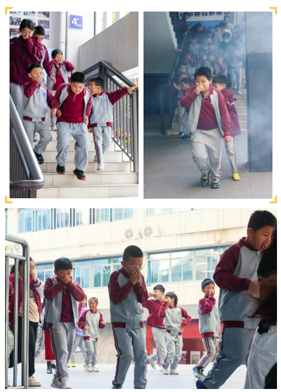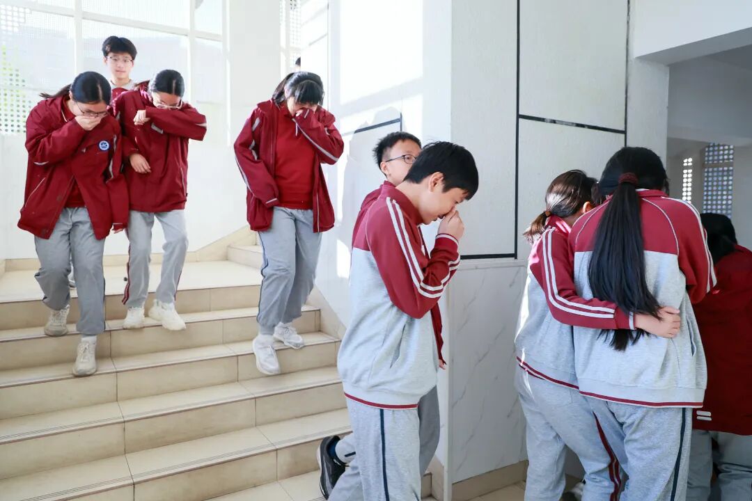 在班主任与楼层指挥教师的精准引导下,同学们迅速捂住口鼻,保持弯腰低姿的安全姿势,沿着预设疏散路线快速移动。楼梯间内,学生们自觉分成两路纵队,靠墙、靠栏杆有序行进,无推挤、无喧哗,整个撤离过程紧张而有序。短短数分钟内,全校师生便安全抵达指定集合区域,疏散通道始终保持畅通无阻。