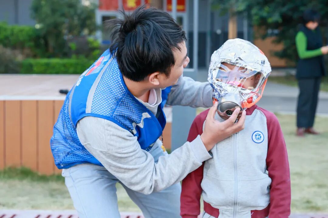 在认真观摩后,学生代表轮流上场,在工作人员的指导下进行实操,亲身体验了如何正确使用灭火器和消毒面罩。通过理论与实践的结合,师生们有效提升了消防技能水平。