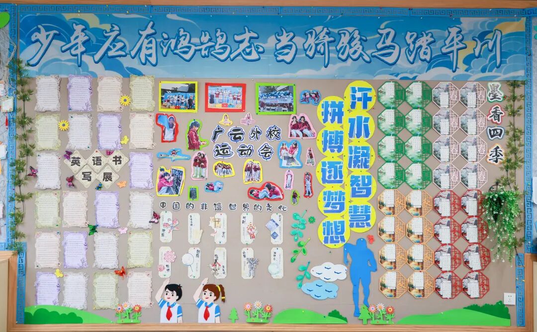 为了营造积极向上的校园文化氛围,丰富学生的课余生活,广云外校初中部于近日成功举办了以“笃学善思,拼搏逐梦”为主题的“黑板报”评比活动。七年级的书香雅致、八年级的拼搏热忱、九年级的昂扬斗志,都在一方黑板上绽放出独特光彩,让我们一同走进这场视觉与思想的盛宴!各年级同学围绕不同主题,用巧思与画笔,呈现了一场异彩纷呈的视觉与思想盛宴。